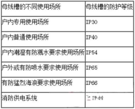 母線槽的防護等級應根據(jù)不同的使用場所進行確定,見表2