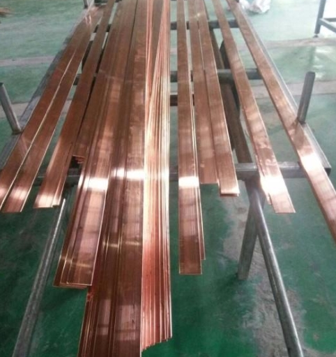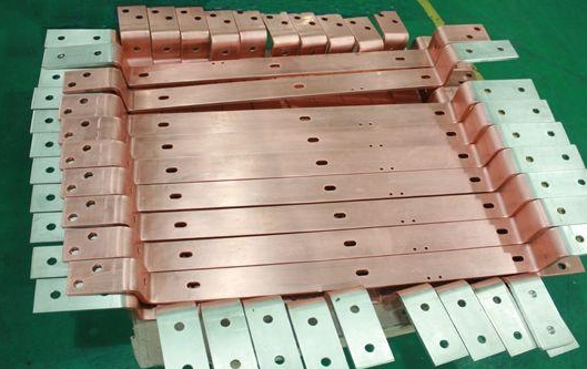 如圖是現(xiàn)已噴涂完結(jié)正在機(jī)床上等待最終拼裝加工的母線槽的母線銅排。