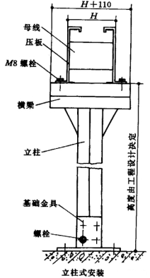4.4封閉式母線槽的落地安裝(圖6)。安裝高度應按規(guī)劃要求,規(guī)劃無要求時應契合標準要求。立柱可選用鋼管或型鋼制造。