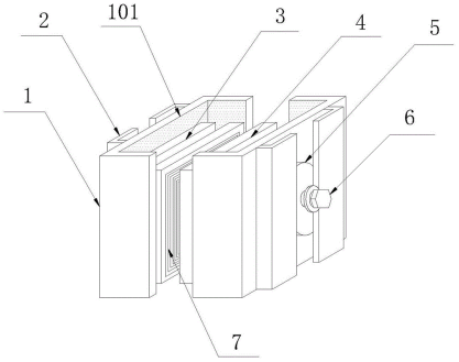 2.根據(jù)權(quán)利要求1所述的一種環(huán)氧樹脂澆注母線槽聯(lián)接器,其特征在于,所述鋼架(1)的內(nèi)周圍面設(shè)置有絕緣層(101),所述絕緣層(101)的材料為環(huán)氧樹脂。